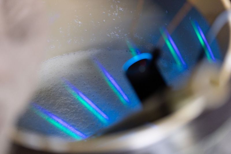 Tout au long de la première fermentation, une sélection de morceaux aux fréquences variées, incluant des sons spatiaux, est diffusée pour stimuler l’action des levures.